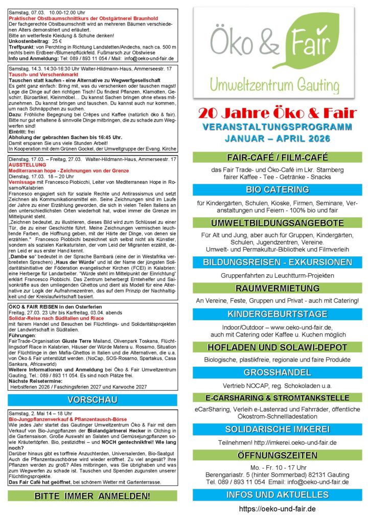 Mit einem bunten Strauß an Veranstaltungen gehen wir in das 20. Jahr von Öko und Fair.